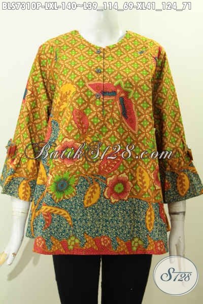 Baju Batik Kerja Wanita Karir, Aneka Busana Batik Model A Simetris Motif Bagus Printing Lengan Berpita, Tampil Mempesona [BLS7310P-L , XL]