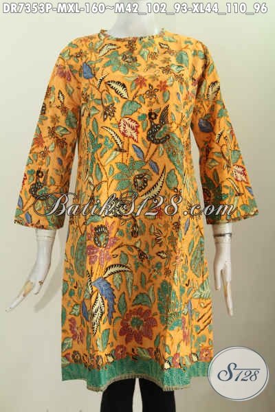 Baju Batik Kerja Wanita Karir, Dress Batik Resleting Belekang Tanpa Krah, Motif Terkini Proses Printing Harga 160 Ribu [DR7353P-M]