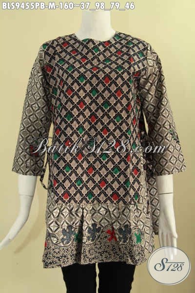 Baju Batik Kerja Wanita Karir Tren Masa Kini, Hadir Dengan Kombinasi 2 Warna Model Resleting Belakang Lengan 7/8 Dan Di Lengkapi Tali Pinggang Di Bagian Kanan Kiri [BLS9455PB-M]