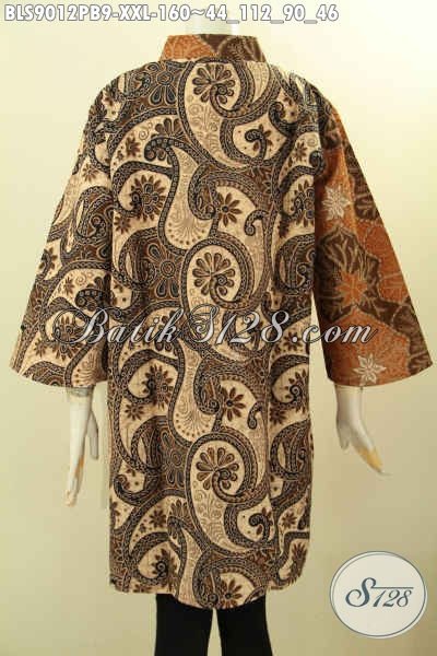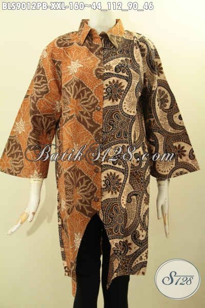 Baju Batik Kerja Wanita Kombinasi, Blouse Batik Elegan Dengan 2 Warna Dan 2 Motif Lengan 3/4 Proses Printing Cabut Kwalitas Bagus Harga Terjangkau, Modis Juga Untuk Ke Kondangan [BLS9012PB-XXL]