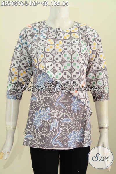 Baju Batik Kerja Wanita Kombinasi, Blus Batik Elegan Dan Modis Kombinasi 2 Warna Model Silang Untuk Penampilan Makin Mempesona [BLS7059C-L]