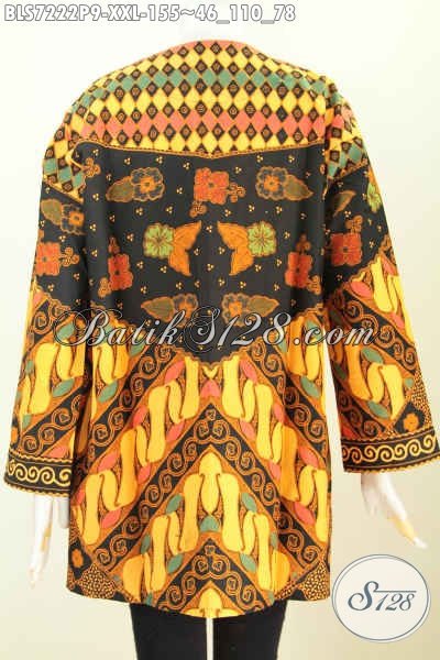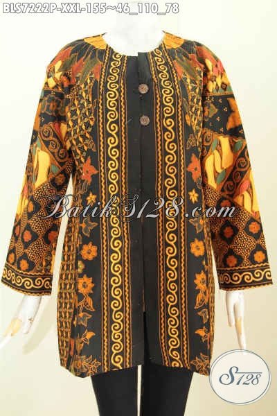 Baju Batik Kerja Wanita Model Terkini, Blus Batik Solo Elegan Tanpa Krah Pakai Ofneisel Motif Klasik Proses Printing Harga 100 Ribuan Saja [BLS7222P-XXL]