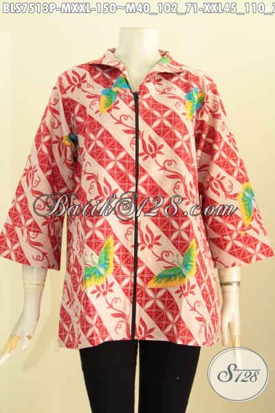 Baju Batik Kerja Wanita Modis, Blus Resti Elegan Klasik Proses Printing Pakai Resleting Dengan Berpadu Kerah Langsung Hanya 150K [BLS7513P-M , XXL]