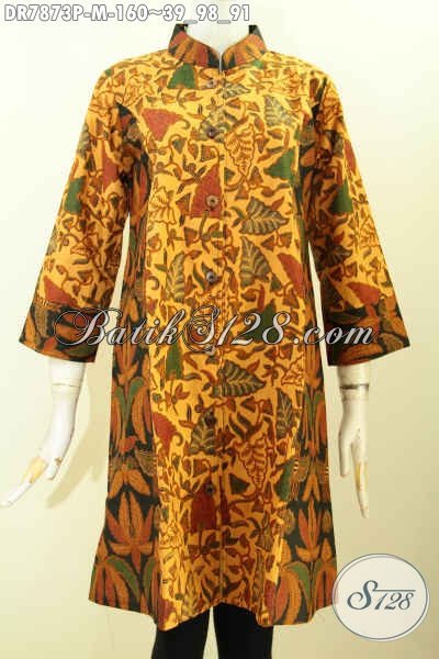Baju Batik Kerja Wanita Muda, Busana Batik Solo ELegan Model Terusan, Dress Batik 2 Motif Pake Krah Shanghai Hanya 160 Ribu [DR7873P-M]