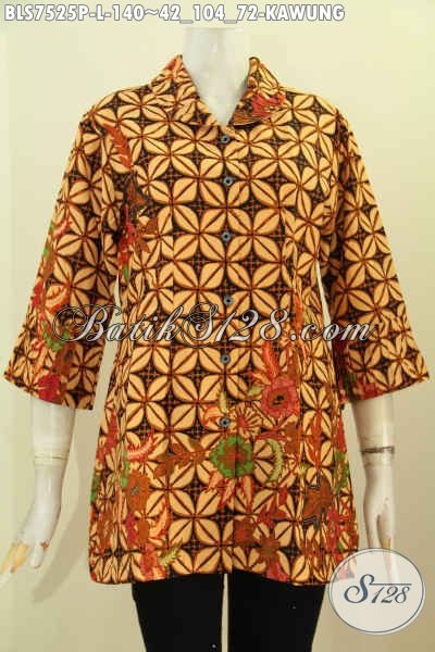 Baju Batik Kerja Wanita Muda Dan Dewasa, Blus Batik Ofi Nan Berkelas Motif Kawung Dengan Ofneisel Krah Dan Lengan, Penampilan Lebih Sempurna [BLS7525P-L]