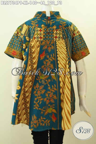 Baju Batik Kerja Wanita Online, Busana Batik Berkelas Buatan Solo Asli Motif Klasik Warna Bagus Proses Printing Hanya 140K [BLS7734P-XL]