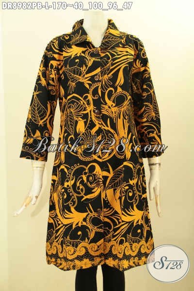 Baju Batik Kerja Wanita Trendy Motif Terbaru, Dress Batik Modis Lengan 7/8 Pakai Kerah Dan Kancing Depan Yang Membuat Penampilan Lebih Modis Cantik Menawan [DR8982PB-L]