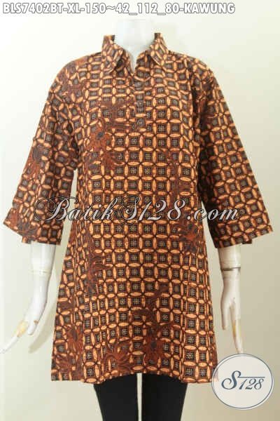 Baju Batik Klasik, Busana Batik Kera Lancip Dengan Kancing Miring Motif Kawung Kombinasi Tulis 150K [BLS7402BT-XL]