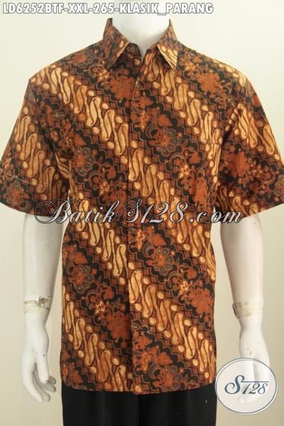 Baju Batik Klasik Elegan Nan Mewah Proses Kombinasi Tulis, Produk Pakaian Batik Halus Istimewa Full Furing Bahan Adem Untuk Rapat Dan Kondangan Buat Pria Gemuk [LD6252BTF-XXL]