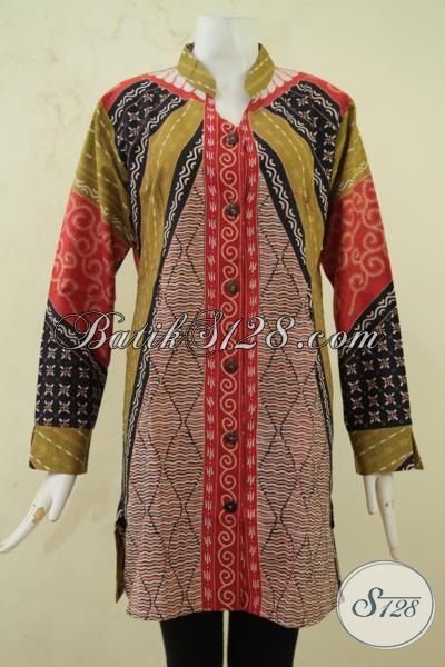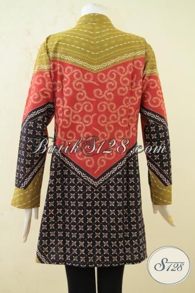 Baju Batik Klasik Lengan Panjang Seragam Kerja Pegawai Bank Syariah, Blus Batik Kombinasi Tulis Desain Trend Membuat Wanita Semakin Kece [BLS3318BT-XL]