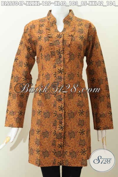 Baju Batik Klasik Model Lengan Panjang Berpadu Kerah Shanghai Nan Elegan, Baju Kerja Wanita Dewasa Untuk Tampil Berkelas, Berbahan Halus Proses Printing Hanya 125 Ribu [BLS5504P-XL]