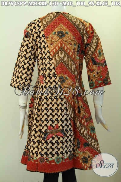 Baju Batik Klasik Motif Kombinasi, Dress Batik Printing Elegan Tanpa Krah Pakai Kancing Depan Yang Membuat Penampilan Mempesona [DR7943P-M]