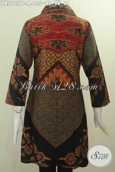 Baju Batik Klasik Nan Elegan, Pakaian Dress Batik Kerah Kotak Proses Printing Istimewa Untuk Wanita Muda Tampil Berkelas Dan Gaya [DR5065P-M]