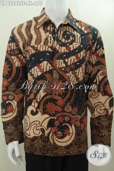 Baju Batik Klasik Solo Proses Tulis Soga, Busana Batik Elegan Lengan Panjang Full Furing Mewah Penunjang Penampilan Pria Dewasa Lebih Berwibawa [LP4928TSF-XL]