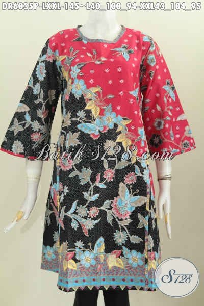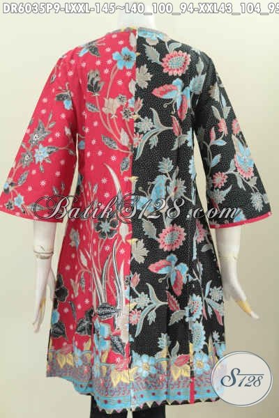 Baju Batik Kombinasi Merah Hitam Motif Keren Model Klok Pakai Resleting Belakang, Baju Batik Printing Harga 145K Untuk Tampil Istimewa [DR6035P-L , XXL]