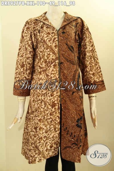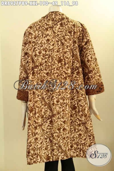 Baju Batik Kombinasi Perempuan, Dress Batik Elegan Mewah Lengan 3/4 Dengan Keeah Model Langsung Motif Bagus Proses Printing Cabut Hanya 190 Ribu Saja [DR8927PB-XXL]