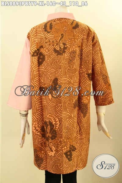 Baju Batik Kombinasi Perempuan, Pakaian Batik Modis Dan Elegan Dengan Kerah Lancip Lengan 3/4 Bahan Adem Nyaman Di Pakai Hanya 160K [BLS8893PBTY-XL]