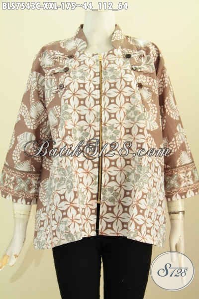 Baju Batik Kombinasi Untuk Wanita Gemuk, Blus Ayus Kerah Shanghai Big Size, Busana Batik Jumbo Resleting Depan Hanya 175K [BLS7543C-XXL]