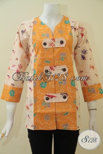 Baju Batik Kombinasi Warna Kuning Dan Cream, Pakaian Batik Modis Desain Oriental Proses Print Dual Motif Cewek Tampil Modis Serta Stylist [BLS3598P-S]