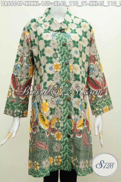 Baju Batik Kwalitas Bagus, Pakaian Batik Istimewa Dari Solo, Hadir Dengan Desain Kerah Miring Bahan Halus Motif Terkini Proses Printing, Cocok Untuk Seragam Kerja [DR6604P-XL , XXL]