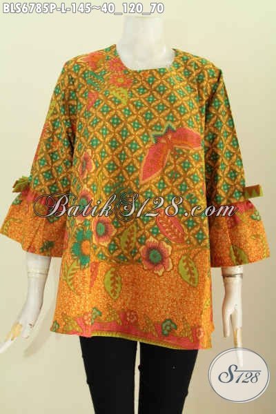 Baju Batik Lengan Pakai Pita, Busna Batik Trendy Wanita Masa Kini, Baju Batik Modern Wanita Murah Kwalitas Mewah Proses Printing [BLS6785P-L]