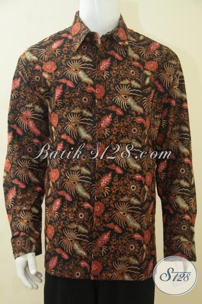 Baju Batik Lengan Panjang Motif Biota Laut, Hem Batik Elegan Desain Formal Daleman Full Furing Size 3L, Baju Batik Jumbo Untuk Pria Gemuk Tetap Modis Dan Ganteng [LP4459CTF-XXL]