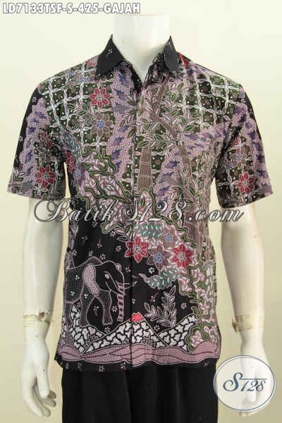 Baju Batik Lengan Pendek Mewah Buatan Solo, Hadir Dengan Motif Gajah Proses Tulis Soga Daleman Full Furing Untuk Pria Terlihat Lebih Mempesona [LD7133TSF-S]