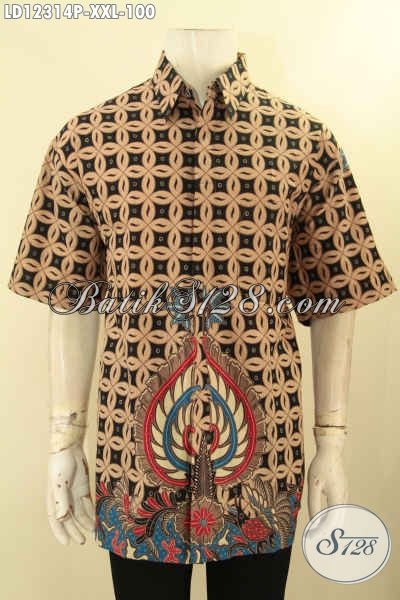Baju Batik Lengan Pendek Pria Gemuk, Busana Batik Kemeja Motif Elegan Dengan Sentuhan Klasik Proses Print, Cocok Buat Ke Kondangan Maupun Acara Resmi [LD12314P-XXL]