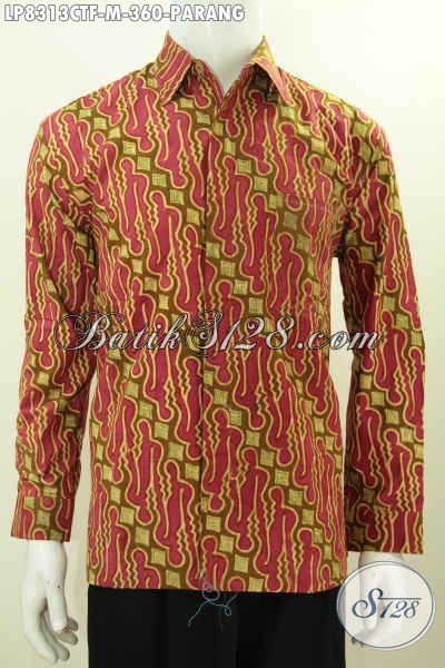Baju Batik Merah Lengan Panjang Motif Parang, Kemeja Batik Full Furing Halus Proses Cap Tulis Pas Banget Untuk Rapat [LP8313CTF-M]