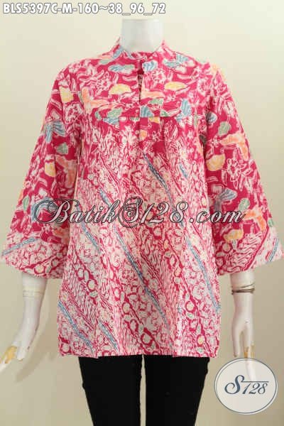 Baju Batik Merah Ukuran M, Blus Batik Kerah Shanghai Motif Bagus Proses Cap Asli Dari Solo Exclusive Buat Wanita Karir Usia Muda [BLS5397C-M]