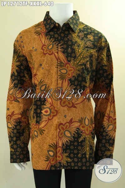 Baju Batik Mewah Jawa Tengah Lengan Panjang Exclusive Untuk Pria Gemuk, Kemeja Batik Tulis Asli Motif Bagus Daleman Full Furing, Pas Banget Untuk Acara Resmi [LP12712TF-XXXL]