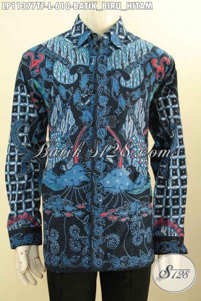 Baju Batik Mewah Jawa Tengah Terbaik Warna Biru Hitam, Kemeja Batik Premium Khas Surakarta Lengan Panjang Full Furing, Tampil Elegan Dan Berkelas [LP11377TF-L]
