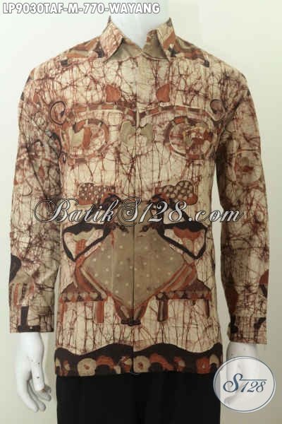 Baju Batik Mewah Pria Lengan Panjang 2018, Busana Batik ELegan Full Furing Bahan Halus Proses Tulis Warna Alam Motif Wayang Harga 770K [LP9030TAF-M]