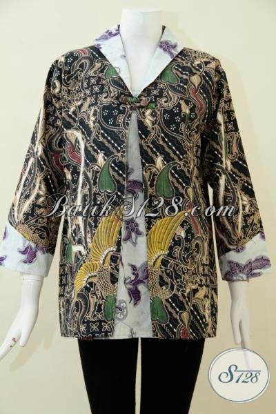 Baju Batik Model Terbaru Lengan Tiga Perempat, Blus Batik Desain Masa Kini Dengan Kombinasi Motif Unik Dan Berkelas [BLS1888BT-L]