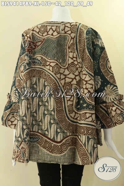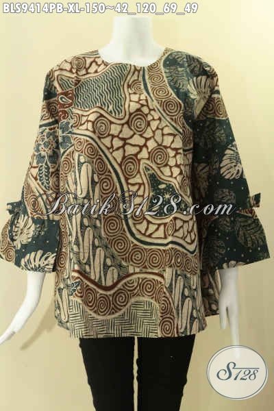 Baju Batik Modern Bisa Untuk Acara Resmi Maupun Kondangan, Blouse Batik Wanita Masa Kini Bahan Halus Motif Elegan Model Kancing Belakang Lengan 7/8 Berpita Hanya 100 Ribuan [BLS9414PB-XL]