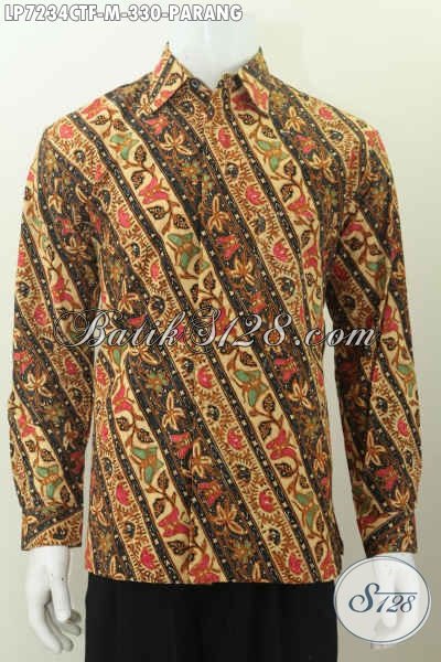 Baju Batik Modern Klasik Motif Parang Bunga, Hem Lengan Panjang Full Furing Mewah Proses Cap Tulis Untuk Cowok Terlihat Mempesona [LP7234CTF-M]