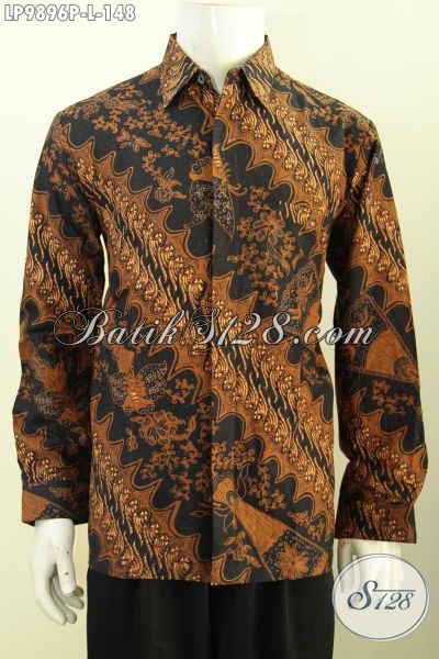 Baju Batik Modern Pria Motif Klasik Model Lengan Panjang, Kemeja Batik ELegan Khas Jawa Tengah Untuk Acara Resmi Tampil Istimewa [LP9896P-L]