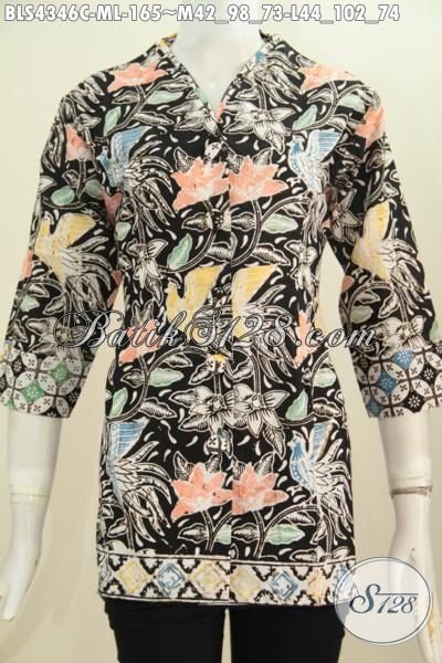 Baju Batik Modern Proses Cap, Hadir Dengan Desain Blus Plisir Kerah Polos Istimewa Cocok Untuk Seragam Kerja Dan Acara Formal Tampil Makin Modis Dan Trendy [BLS4346C-M , L]