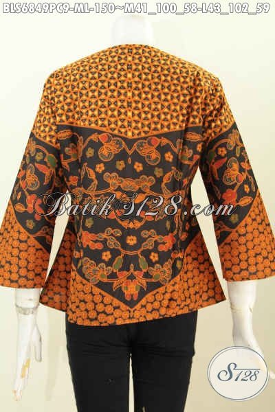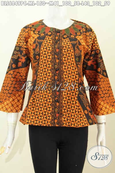 Baju Batik Modern Untuk Kerja, Blus Batik Klasik Motif Sinaran Proses Printing Desain Tanpa Krah 150K [BLS6849PC-M , L]