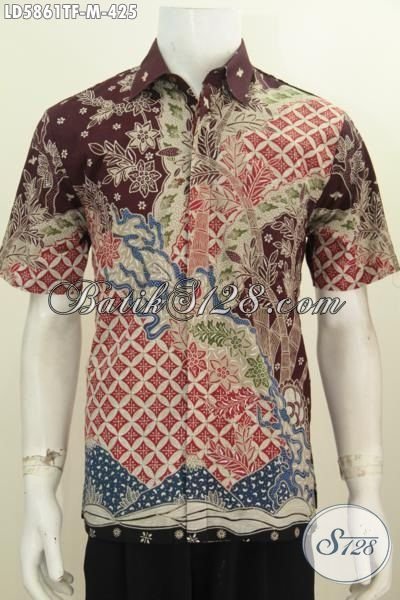 Baju Batik Modis Dan Elegan Proses Tulis, Busana Batik Lengan Pendek Full Furing Mewah Bahan Adem Motif Terbaru Untuk Pria Terlihat Tampan Mempesona [LD5861TF-M]