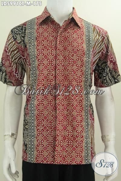Baju Batik Modis Lengan Pendek, Hem Batik Keren Istimewa Dari Solo, Jual Online Pakaian Batik Cowok Kwalitas Istimewa Untuk Kerja Dan Pesta Bahan Adem Proses Cap Tulis Size M [LD5991CT-M]