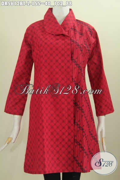 Baju Batik Monokrom Merah Hitam, Dress Batik Trend Terkini Model Kerah Miring Bahan Adem Proses Kombinasi Tulis Tampil Modis Dan Mewah [DR5612BT-L]