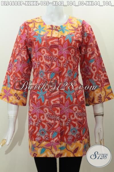 Baju Batik Motif Bunga Kombinasi Dua Warna, Blus Batik Solo Proses Printing Deain Keren Cocok Untuk Ke Pesta [BLS4688P-XXL]