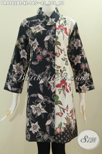 Baju Batik Motif Bunga Nan Modis, Produk Busana Dress Istimewa Bahan Adem Proses Kombinasi Tulis Warna Pagi Sore Desain Kerah Miring Bikin Wanita Telihat Lebih Mempesona [DR4982BT-XL]