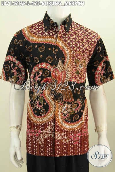 Baju Batik Motif Burung Merpati, Kemeja Batik Elegan Dan Modis Bahan Halus Proses Tulis Soga, Hem Batik Lengan Pendek Full Furing Buat Tampil Gagah Menawan [LD7142TSF-L]