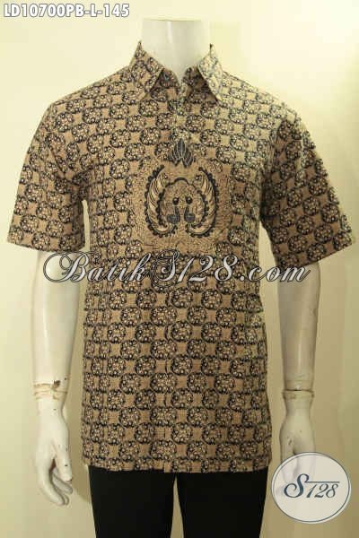 Baju Batik Motif Klasik Mewah Lengan Pendek Proses Printing, Pakaian Batik Solo Berkelas Bahan Adem Nyaman Di Pakai Harian [LD10700PB-L]
