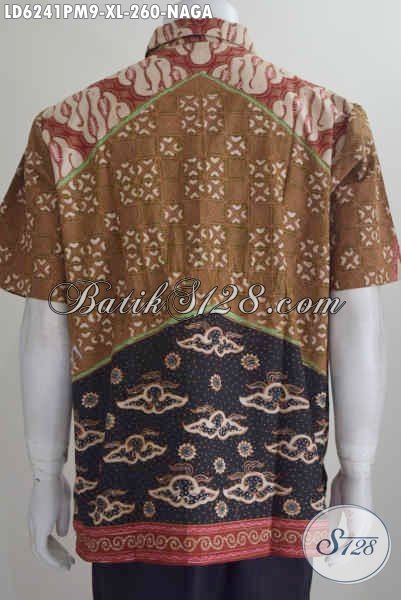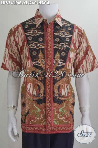 Baju Batik Motif Naga, Kemeja Batik Lengan Pendek Mewah Halus Harga 200 Ribuan Berbahan Adem Proses Kombinasi Tulis Size XL [LD6241PM-XL]