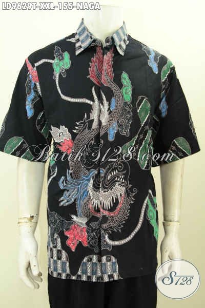 Baju Batik Motif Naga, Kemeja Batik Solo Modern Lengan Pendek Size XXL Proses Tulis, Pria Gemuk Tampil Macho [LD9629T-XXL]
