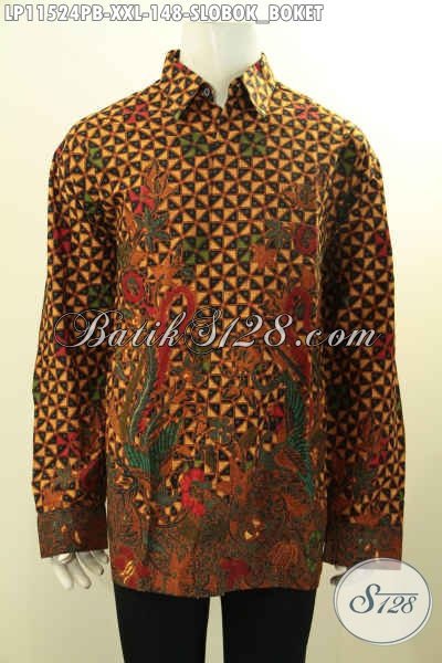 Baju Batik Motif Slobok Boket Model Tangan Panjang, Kemeja Batik Elegan Nan Istimewa Proses Printing Halus Harga Terjangkau, Cocok Untuk Acara Formal Atau Kondangan [LP11524PB-XXL]