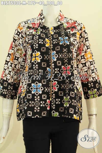 Baju Batik Motif Unik, Blus Ayus Istimewa Proses Cap Bahan Adem Desain Kerah Shanghai Resleting Depan, Tampil Lebih Menawan [BLS7533C-M]